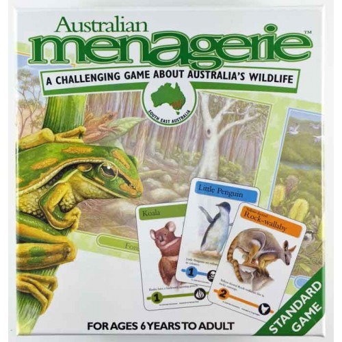 An excellent fun, family game of chance and strategy that teaches players about the diversity of Australian wildlife, where and how the animals live and what factors affect their survival. There is 3 levels of difficulty to make the game enjoyable for everyone. The aim of Menagerie is to collect as many animals as you can for each habitat of your nature reserve and to protect them from the threats to their survival such as pollution, fire and feral animals. You will score points for each animal you have in your nature reserve and the first player/team to gain 100 points or more wins the game.