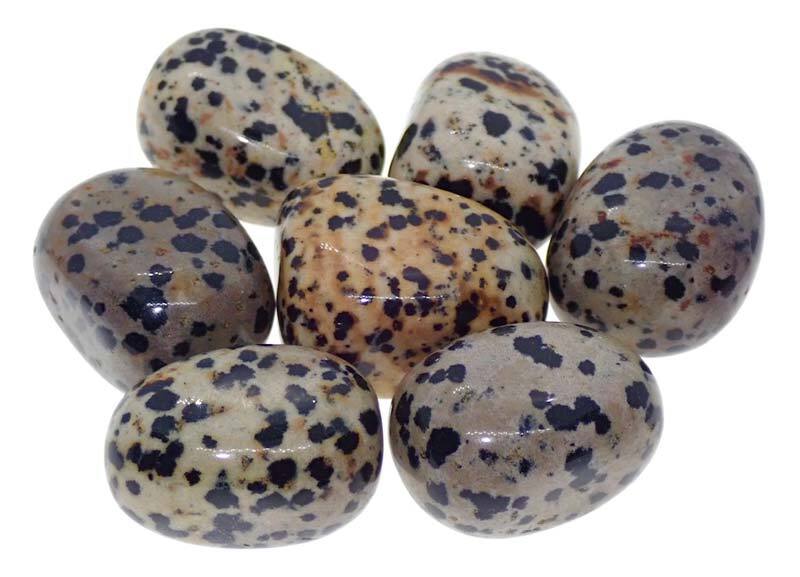 Dalmatian Jasper is a form of Jasper characterised by its natural, unique spots - much like the Dalmatian dog.
