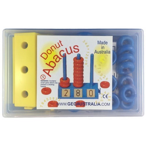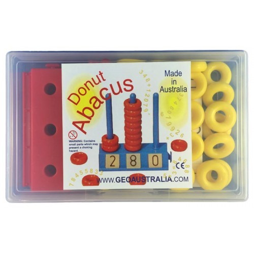- Includes 1 x abacus stand with 3 posts, 27 donuts and 3 complete sets of hot-stamped number tiles from 0-9