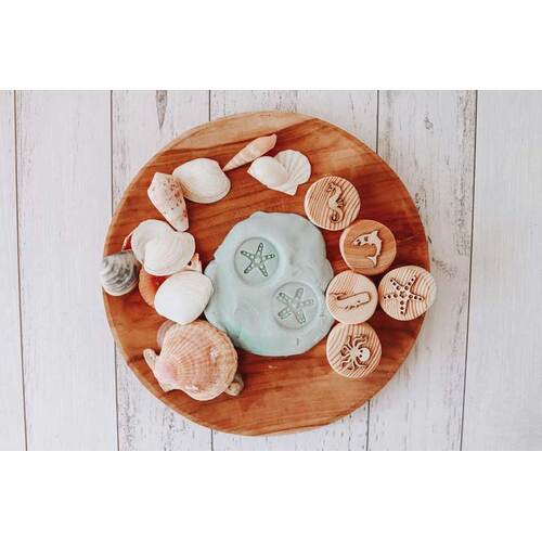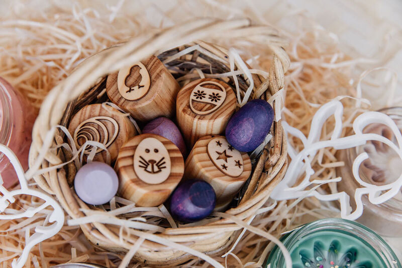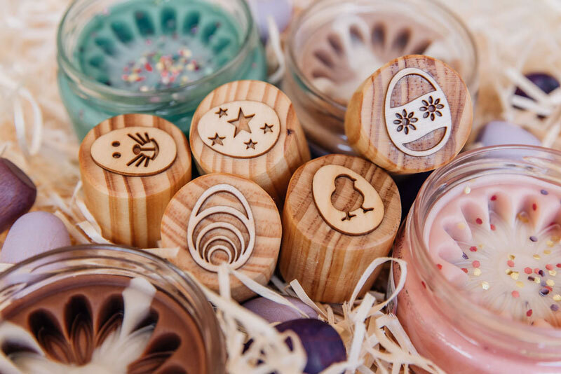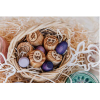 Set of 5 handmade wooden Easter themed stamps can be used with dough and kinetic sand.