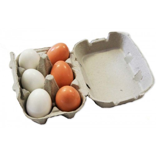 - Contains 6 wooden eggs (3 white and 3 brown)