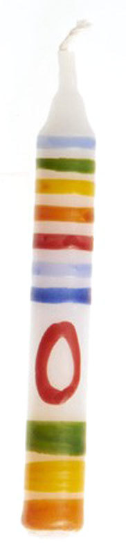 A gorgeous rainbow stripe candle with single number to recognise a special birthday. Use directly on a birthday cake or in combination with decorations on a celebratory birthday ring. These candles are a millimetre wider than Grimm's candles, but can be made to fit the Grimm's holders.