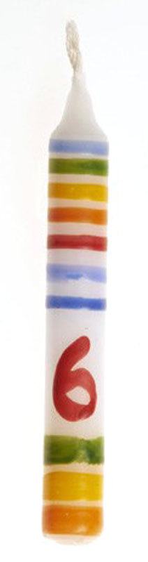 A gorgeous rainbow stripe candle with single number to recognise a special birthday. Use directly on a birthday cake or in combination with decorations on a celebratory birthday ring. These candles are a millimetre wider than Grimm's candles, but can be made to fit the Grimm's holders.