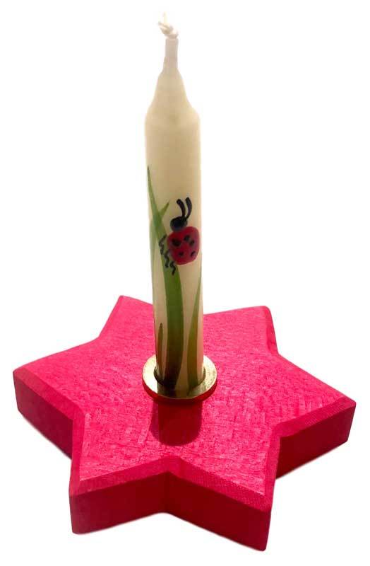 Gluckskafer wooden star candle holder for a single candle. Available in 3 different colours.