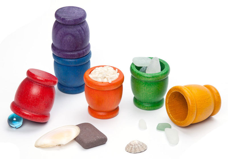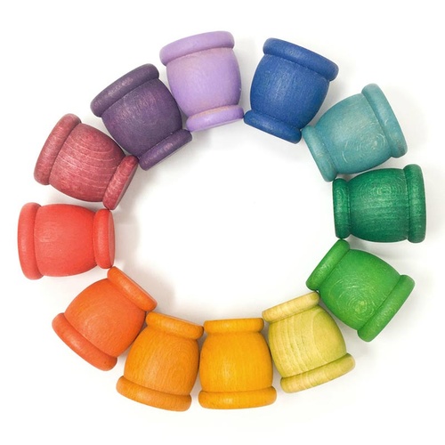 The Grapat wooden mates in 6 different colours make a harmonious colour scale. They can be combined with other materials to be mathematical, or have a sensory role. Match objects of colour to each cup or see what fits and what doesn't.