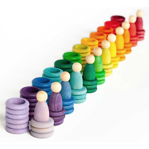 - The set contains a total of 6 coloured wooden mates in 6 rainbow colours