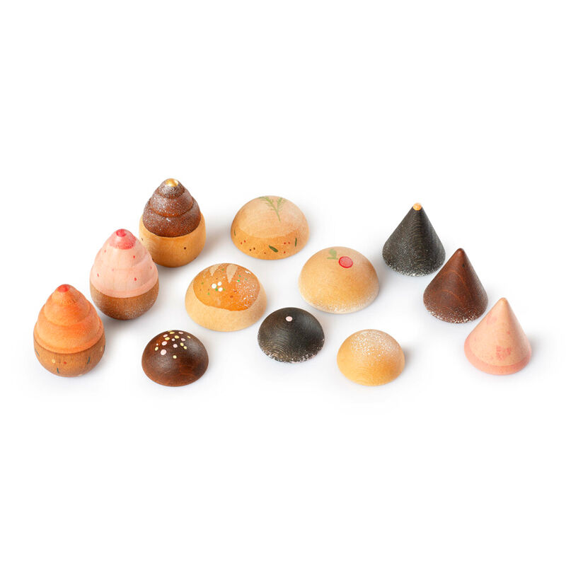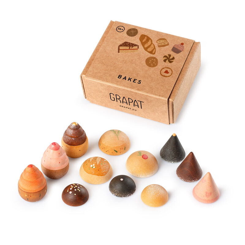 Fresh from the oven! These hand-painted wooden breads and cookies are ready to fill little kitchens with delicious pretend smells and endless stories. Perfect for symbolic play, setting the table, hosting a tea party, or simply enjoying the feel of each warm, inviting piece in your hands.
