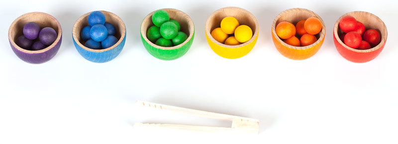 The bowls and the marbles are for the development of a logical mathematical thinking by classifying, grouping, matching and counting the marbles with the bowls. Great for fine motor skills too!