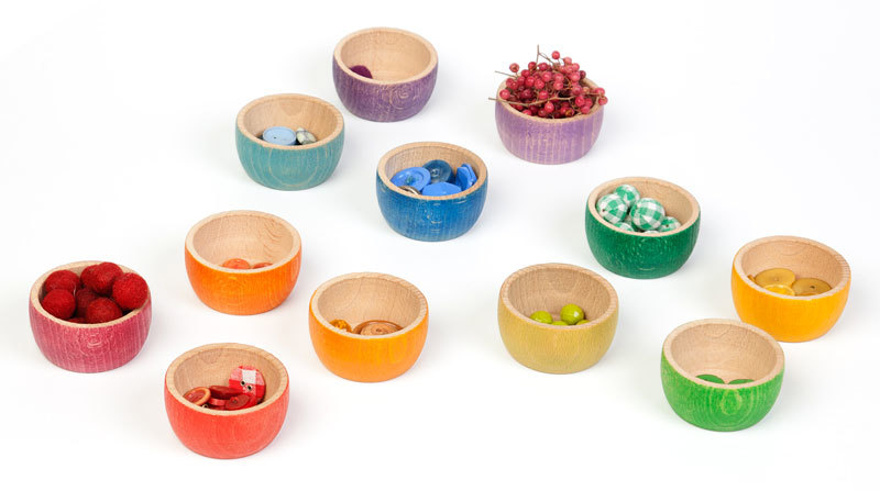 The Grapat 12 bowls with 12 different colours make a harmonious colour scale which brings balance and a great sense of aesthetics to games. The bowls compliment the games of filling up and emptying out, using to load and unload. A bowl can be used to cover, another bowl making its contents appear or disappear.