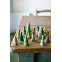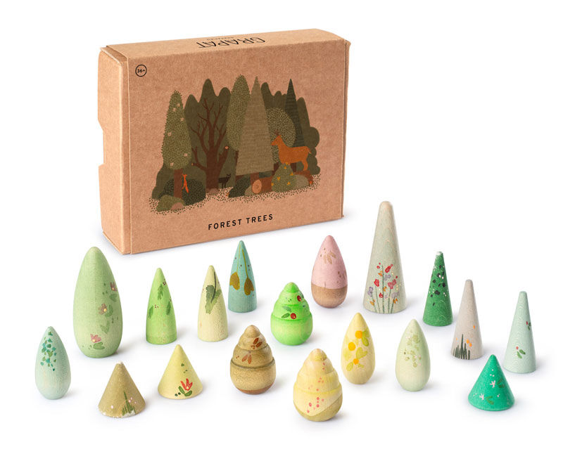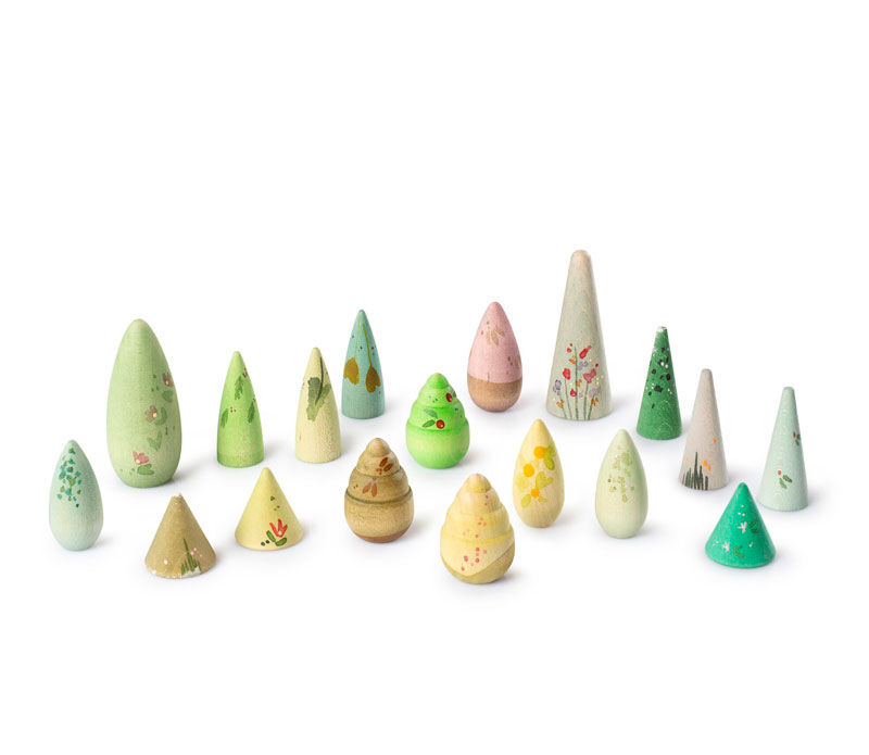 These trees can populate tiny landscapes or grow into vast forests. They can be a hiding place for animals, a shade to rest under, or a silent guardian in the middle of an adventure. They are open-ended pieces, designed for symbolic play and small worlds. A simple object to accompany free play, that territory without instructions where childhood discovers what happens beneath the branches. Be free, play open!