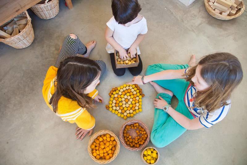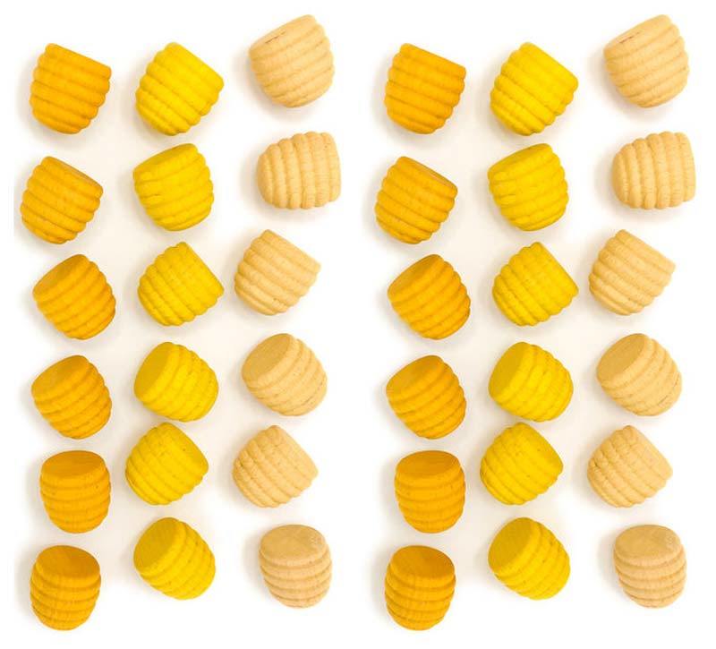 - Set of 36 wooden honeycombs in 3 shades of yellow