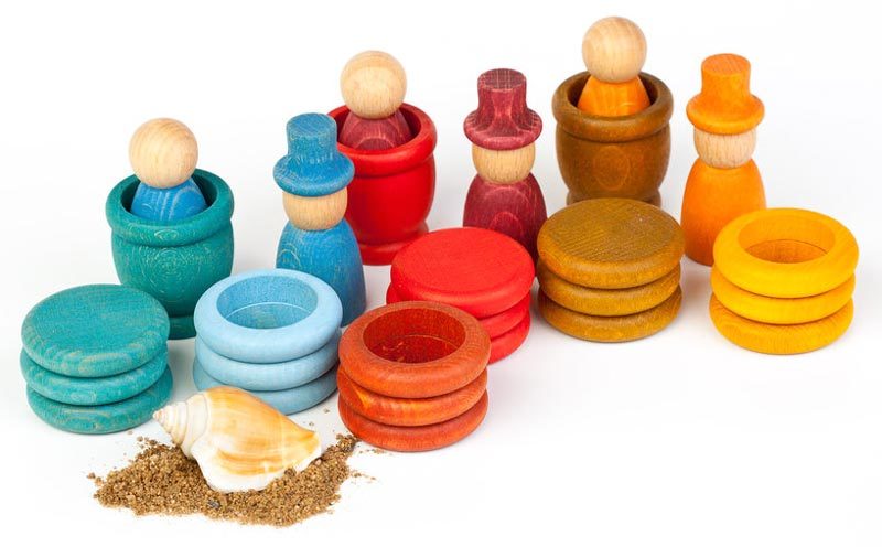 - Set includes 3 Nins, 3 Nins with top hats, 3 mates (cups), 9 rings and 9 coins