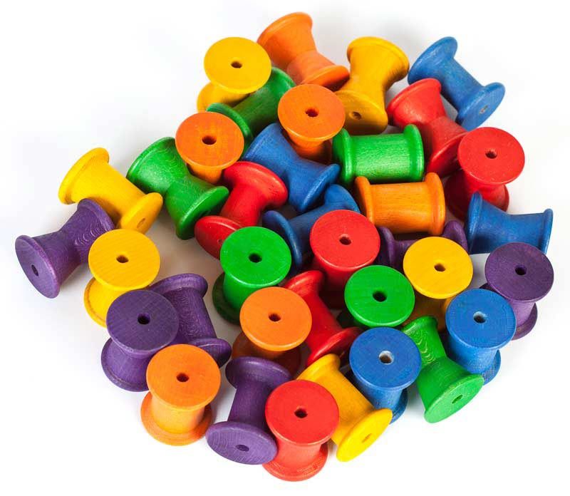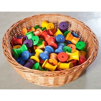 The Grapat 36 wooden spools in 6 different colours and 3 differing styles. They can be used for stacking, threading onto laces or combined with other Grapat parts to be a mathematical, or constructive role.