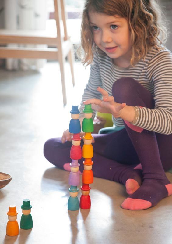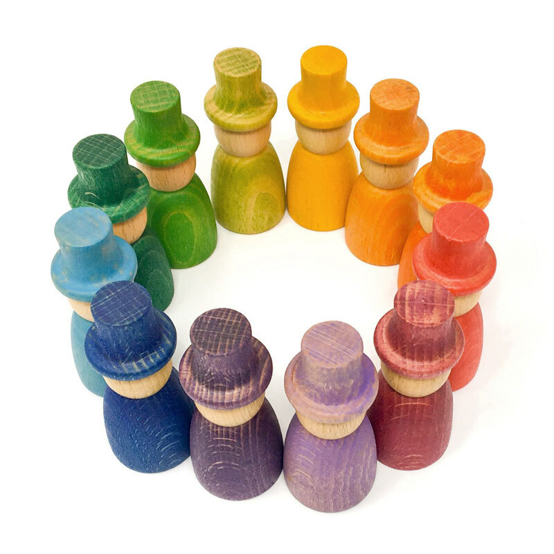 The Grapat Nins Magos (or wizard dolls) in 12 different colours are an open-ended play set presented without gender or expression. This allows children to use their own imagination to make up their own stories. Can be combined with Nins or other elements within the Grapat range for endless play opportunities.