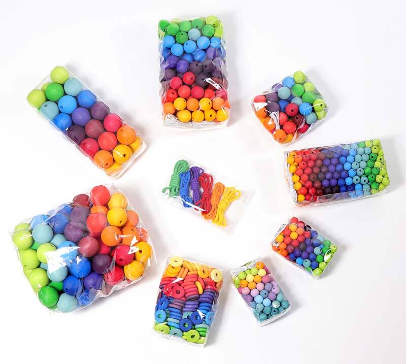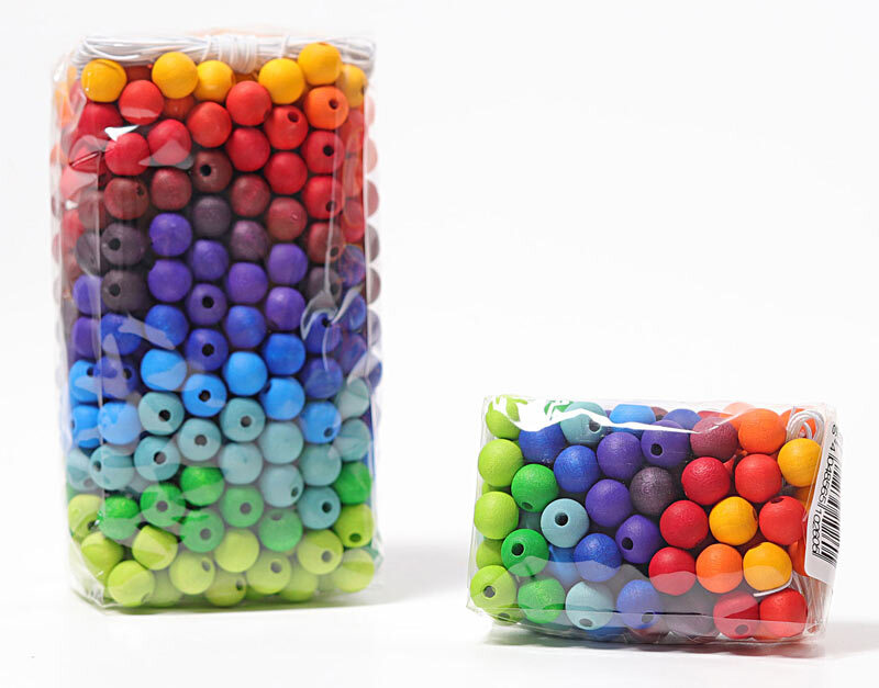 Exercise fine motor skills, hand-eye coordination and sorting skills with Grimm's 120 Rainbow Coloured Beads.