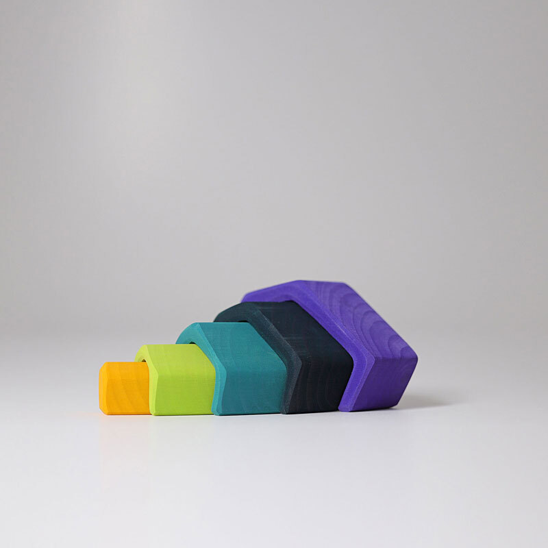Toddlers will love creating their own sculptures with the Small Earth from Grimms. Perfect for little hands the small cave can be used to stack, sorting and recognise colour and spatial size variations. Grimm's Earth also makes a very attractive piece for a child's room!