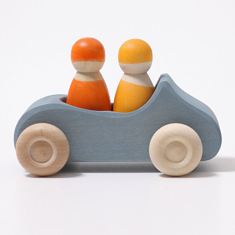 A simple yet captivating convertible car can take 2 rainbow friends on a jaunt into the countryside.