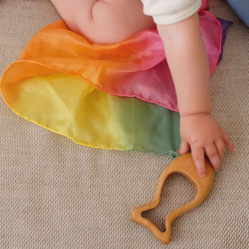 The rattle fish is filled with fine semi-precious stones, which make a pleasant, gentle sound. The wood used from the alder tree is very special and gives unique structure to each of our rattles and grasping toys. The plant-based oil finish protects the wood and accentuates this vivid structure.