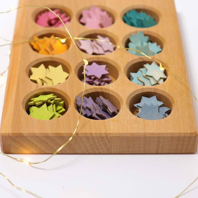 This board makes a lovely compliment to the Grimm's 12 Rainbow Pastel Friends. Great for little ones to learn to recognise and match different colours and to place each friend int the correct coloured hole. Also great for developing fine motor skills.