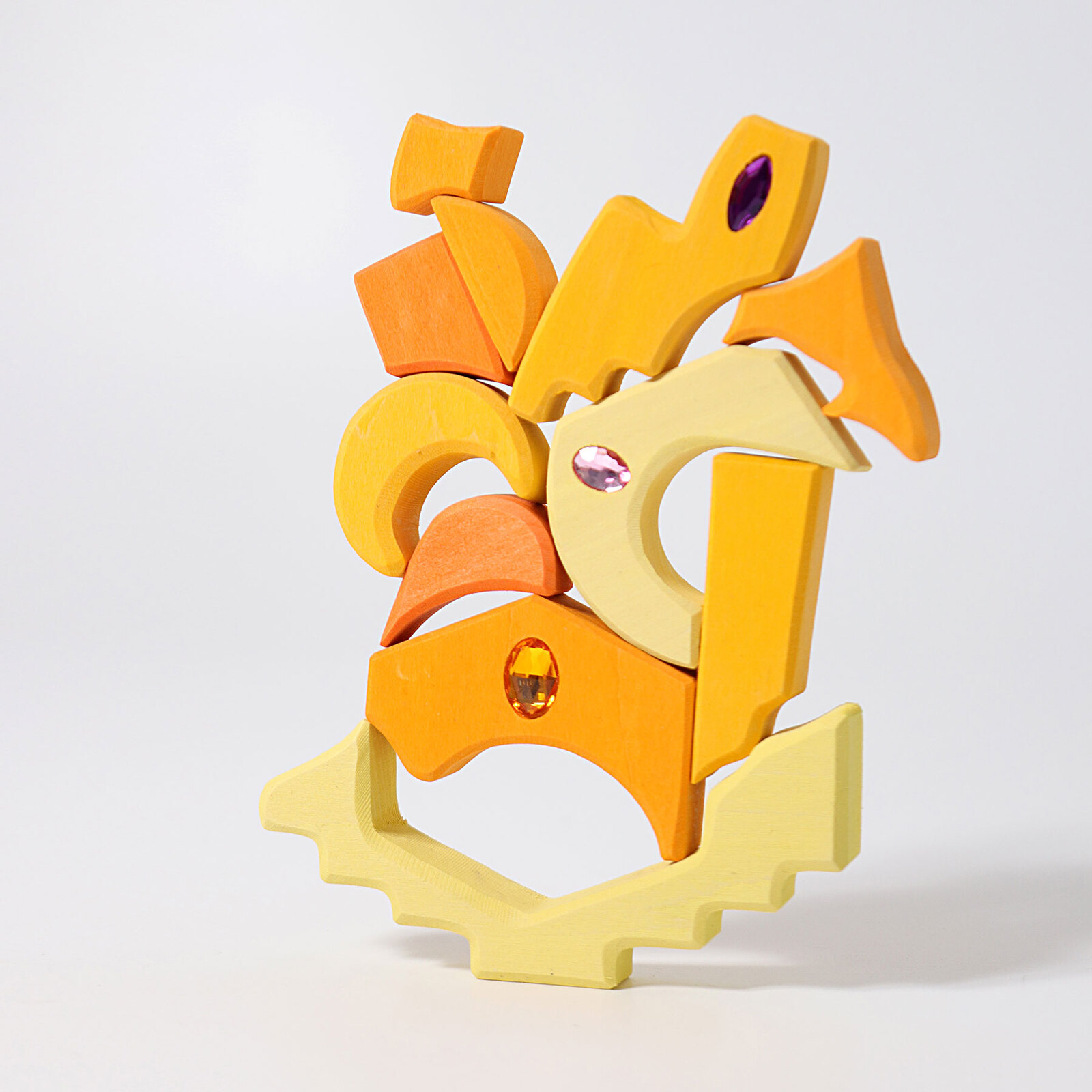 With the Orient inspired and organic shapes of this set, sparkling scenes, cities and landscapes can be built. The unique variety of shapes inspires children to build new play scenes every time. This building set is a perfect complement to our landscape Puzzle (43500) and the Small Four Elements Building Set (10217). These smaller building sets are well suited for tabletop play where wonderful structures cab arise or different marble games can be imagined. Through these play activities, children are able to develop fine motor skills as well as logic and spatial thinking skills.