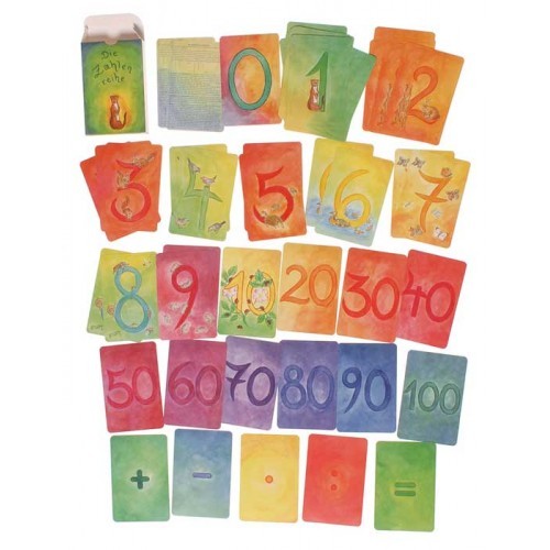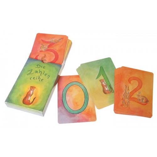 Grimms Waldorf Maths cards are beautifully illustrated to help children learn their numbers and strengthen their math skills. Each number is represented by the number of animals. Even for small children, it is easy to understand that two rabbits plus seven butterflies are as much as nine mice.