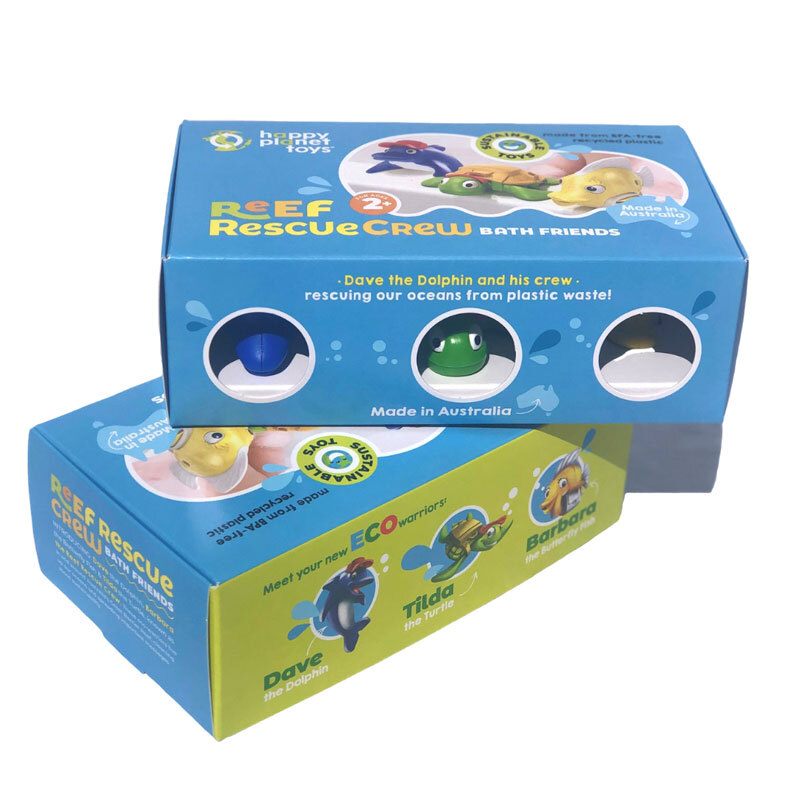 Make bath time and water play fun with three of your favourite ocean friends. Dave the dolphin, Tilda the turtle and Barbara the butterflyfish.
