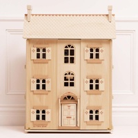 With minimal artwork details that enhance the natural beauty of the wood, this dolls house allows children's imaginations to flourish. The strategically placed windows at the front and back let natural light illuminate the interior, making it a captivating centerpiece for playtime.