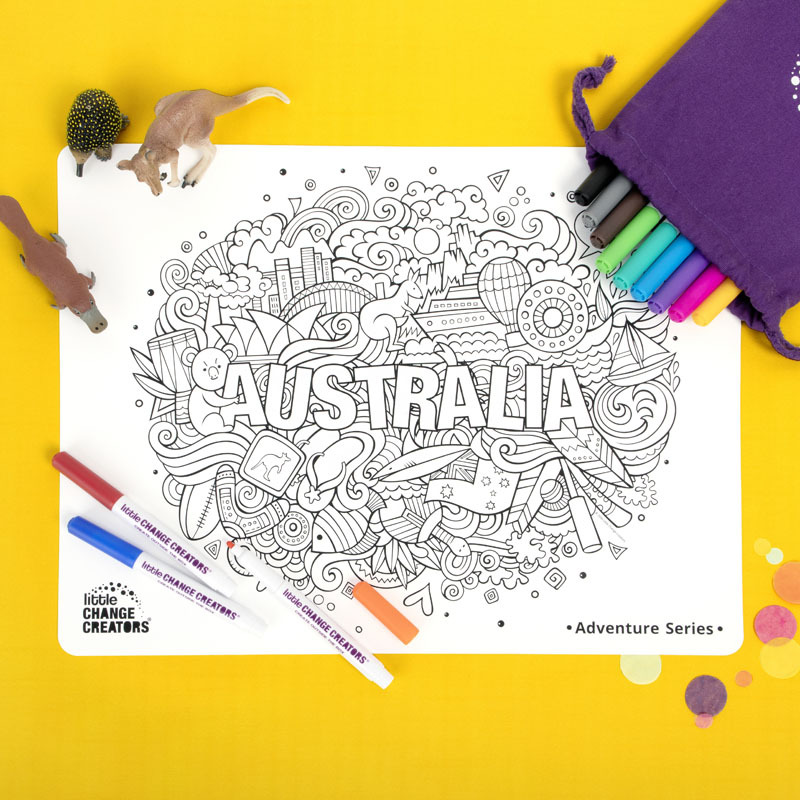 Adventure awaits across this colourful land down under! Crikey! It’s no wonder kids love this Aussie-themed colouring set. Featuring iconic landmarks and all your favourite Australian animals, it’s an easy way for kids to have fun and learn at the same time. Colour koalas, kangaroos, wombats and more – there are so many little details to discover on these double-sided colouring mats.