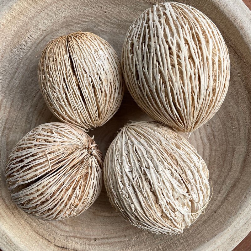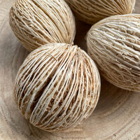Mintolla Balls are the skeleton of the fruit from the Pong Pong tree. They are firm, round, ball-shaped and have a fibrous pattern on the outside. Use as a decoration, craft activities or in natural discovery tables.