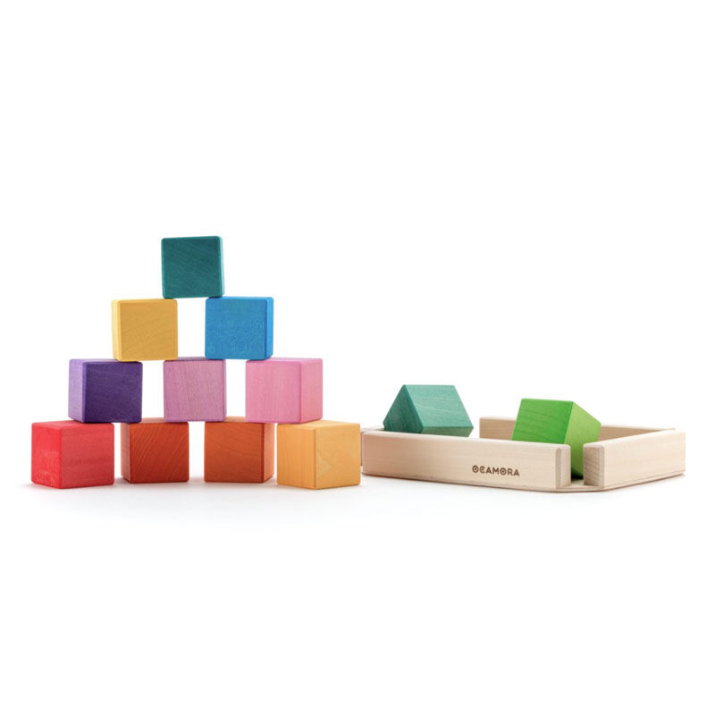 Manufactured in a small workshop near Cordoba, Spain, Ocamora has been designed for free and open-ended play. There are no instructions. They can be used for stacking counting and colour recognition and can also be combined with other building sets. Please note that Ocamora toys are manufactured with natural timber and from time to time knots or unusual markings may be present. These are not regarded as faults but rather natural elements that are present to be embraced. Designed for little hands beginning their first building projects.