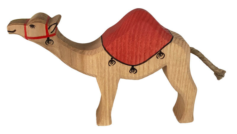 - The Dromedary with saddle has been sanded by hand and then painted with watercolours and finished with natural oils to maintain the vibrant colours and protection of the timber