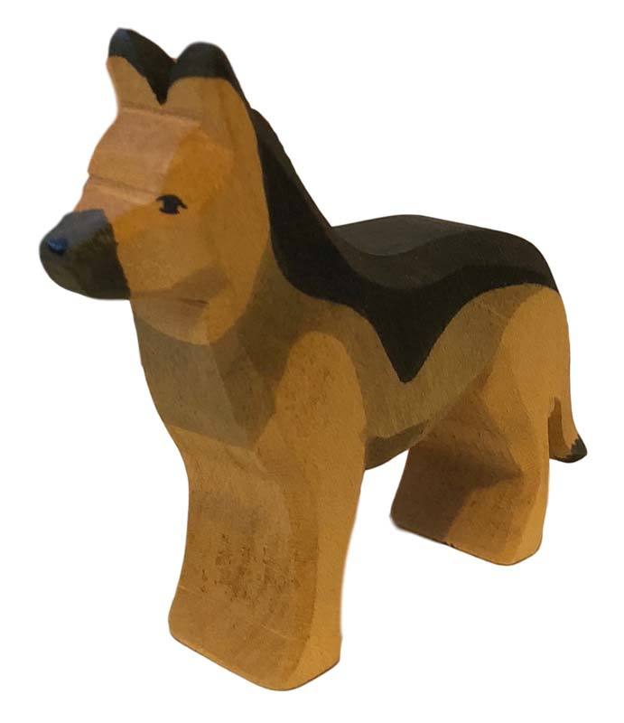 - The German Shepherd Dog has been sanded by hand and then painted with watercolours and finished with natural oils to maintain the vibrant colours and protection of the timber