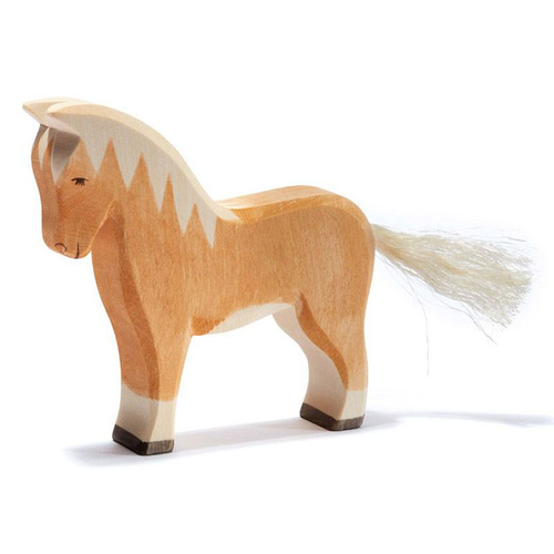 - The Haflinger colt has been sanded by hand and then painted with watercolours and finished with natural oils to maintain the vibrant colours and protection of the timber