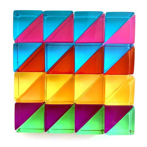 A stunning set of 32 acrylic lucite triangles for counting, sorting and making mosaics.