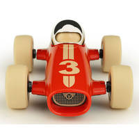 Look out Fangio, here comes Benjamin! Super cool good looks in orange-red with moveable cream wheels and matching racing stripes. Benjamin is made from heavy duty plastic which is robust and solid. He has a chrome helmet and will launch dreams of being the next formula 1 champion!