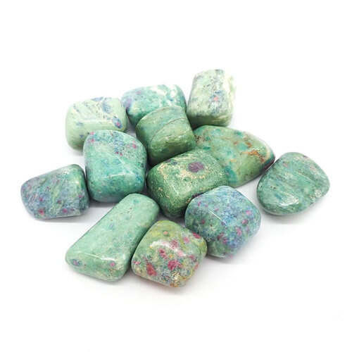 Ruby Fuchsite is a naturally occurring combination of green fuchsite and ruby (red colouration) and is found in India.