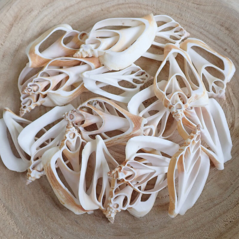 Strombus canarium is a type of edible sea snail. Shells have been cut in the centre creating these amazing fascinating shapes.