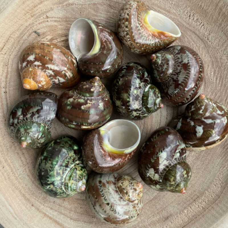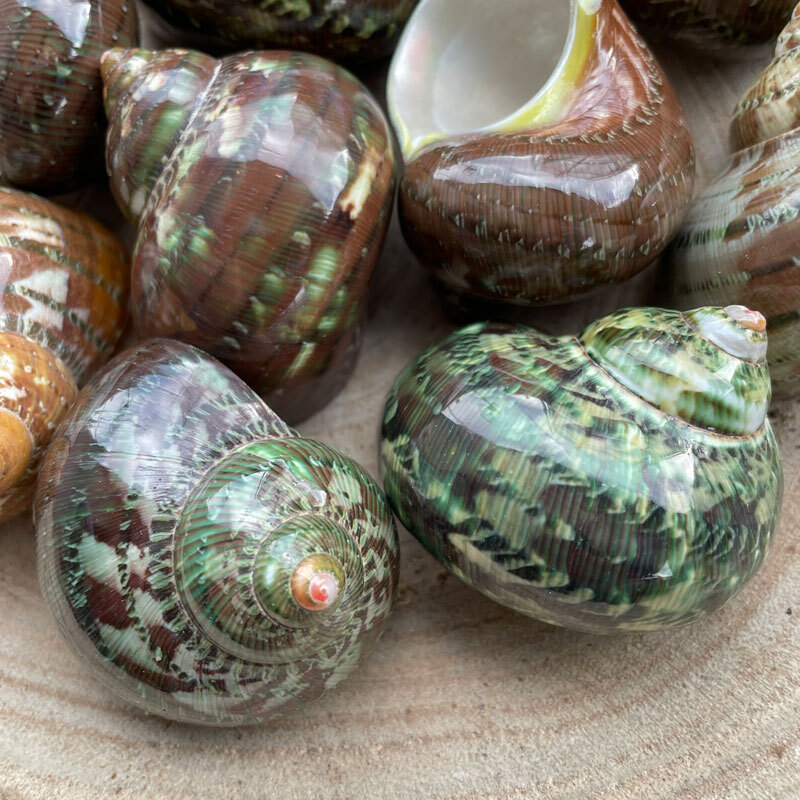 The Tapestry turban is a rich brown and sometimes green coloured. It has a smooth polished shell. Children are fascinated with different shells and they can be used as part of marine teaching or admired at home.